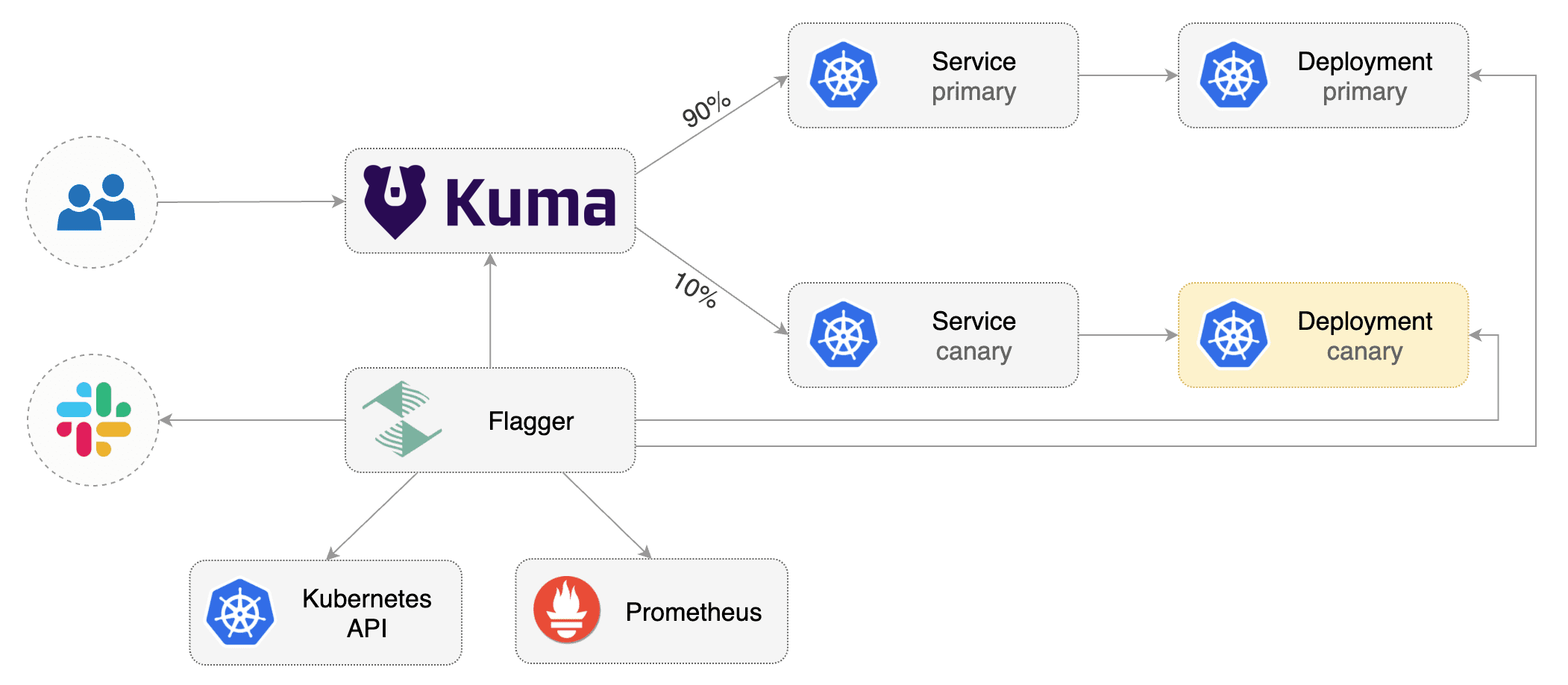 This guide shows you how to use Kuma and Flagger to automate canary deployments.